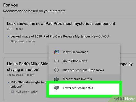 Limit specific topics in the future. Similar to requesting more stories on a topic, you can also reduce the frequency of certain topics by: