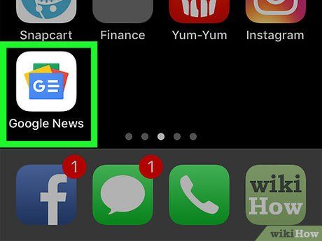 Open Google News. Tap on the Google News app, which features a red, yellow, blue, and green card icon on a white background.