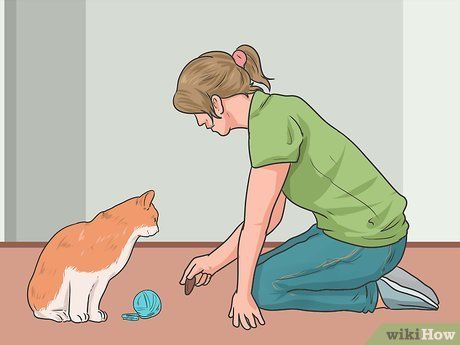 - If your cat picks up the toy but doesn't drop it in front of you, show them the treat. Your cat will drop the toy to take the reward.