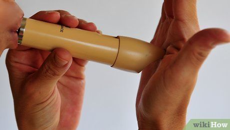Practice Playing Higher Notes. These notes might be a bit challenging. To play a note higher than D’, you will need to use a technique called 'tightening the thumb hole'. Use the tip of your thumb to cover about 2/3 to 3/4 of the thumb hole. Pucker your lips slightly and blow a bit harder than usual to achieve the sound.