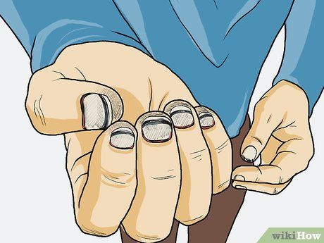 Darken your nails and fingertips to create a grimy appearance. Dab black eyeshadow beneath your nails and around the nail edges, blending it down onto your fingers so the "dirt" is most concentrated around the nails and fades as it reaches your fingers.