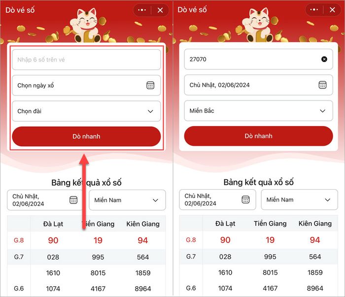 - Nhập 6 số trên vé: Nhập dãy mã số trên vé số