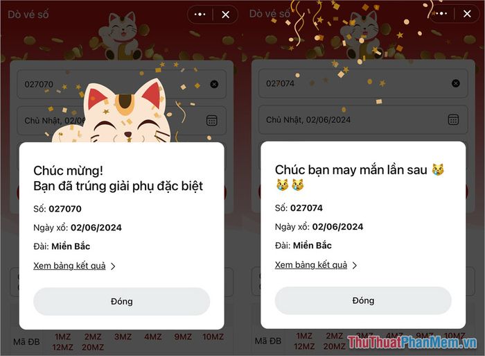 Step 3: If your lottery ticket is a winner, the system will notify you with “Congratulations! You have won the prize ….”. If your ticket is not a winner, the system will send a message “Better luck next time”.