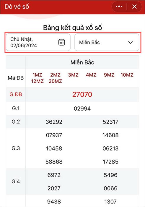 - Chọn ngày xổ số: Chọn ngày tra cứu kết quả xổ số