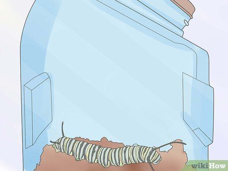 - Cover the jar's opening with a piece of mesh or netting and secure it with a rubber band to allow airflow. Avoid poking holes in the lid (as some websites suggest) because caterpillars might try to crawl through and injure themselves on the sharp edges.