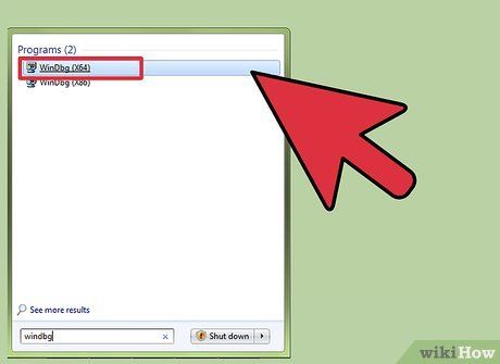 - The quickest way to start the program is by pressing ⊞ Win and typing "windbg."