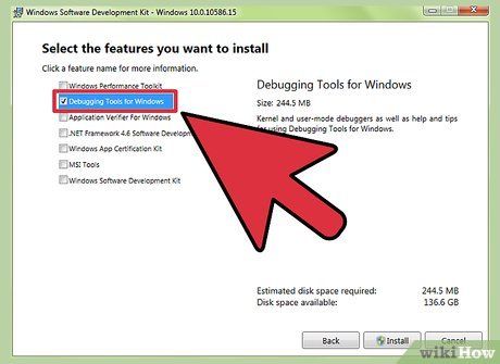 Uncheck everything except for "Debugging Tools for Windows." You can deselect all other unnecessary features when opening the dump file. This will help save installation time and disk space.