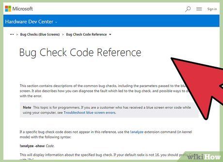 - Visit Microsoft Bug Check Code Reference to find the BugCode matching the two-character code from the list.