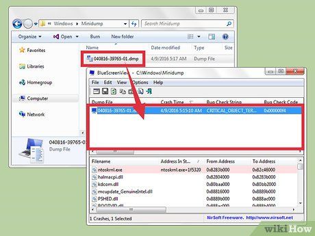 Locate the dump file you want to analyze. When your computer encounters an error, a "minidump" file will be created in the Windows folder. These files have a .dmp extension, and BlueScreenView can read and analyze them for you. You can find the Minidump file at C:\Windows\Minidump. If you can't find the file, you need to adjust your settings to display hidden files: