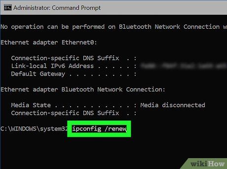 Enter ipconfig /renew and hit ↵ Enter. This command will assign a new IP address to the device.