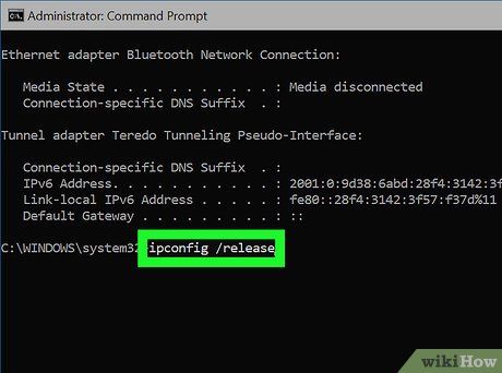 Type the command ipconfig /release and press ↵ Enter. This will release the IP address.