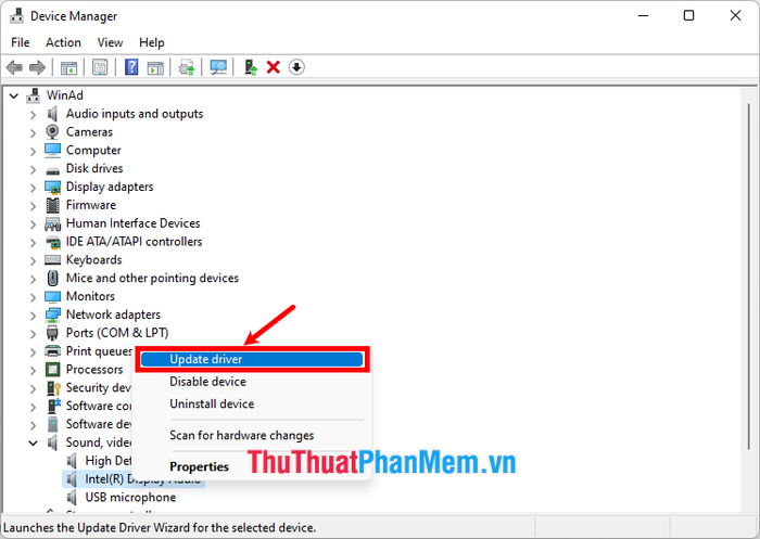 Open Device Manager, right-click on any item under Sound, video and game controllers, and select Update driver.