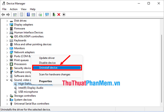 Right-click on the sound driver you wish to remove and select Uninstall device.