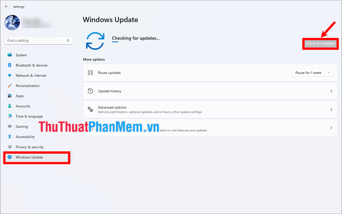 In the Settings window, select Windows Update (or Update & Security → Windows Update). Then click on Check for updates. Windows will automatically download and install the available updates, including the sound driver.