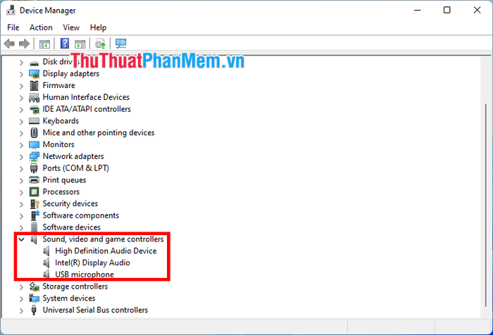 In the Device Manager window, locate and expand the Sound, video and game controllers section.