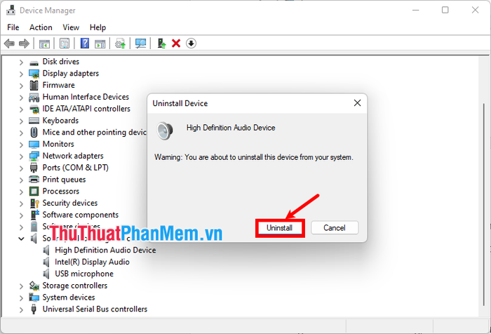 In the confirmation dialog for removing the sound driver, you can check the option Delete the driver software for this device to completely remove the driver (if available), then click Uninstall to confirm the removal.