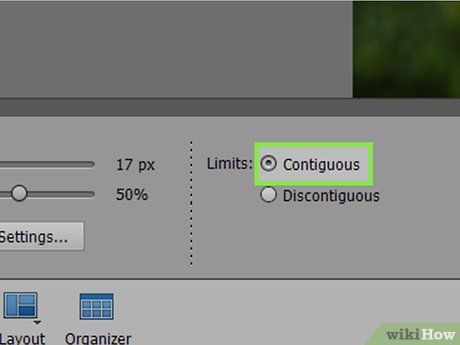 Set Limits to Contiguous. This will erase the color you select within the circle when you click on it. This ensures you're only erasing the background and avoids removing any colors from the subject of the image.