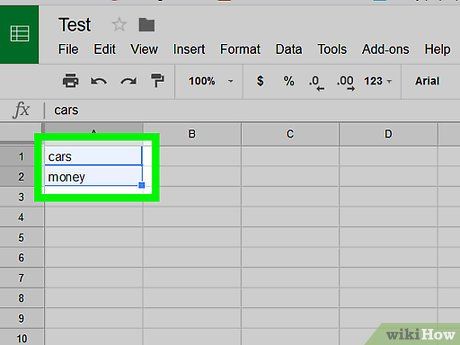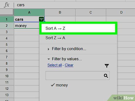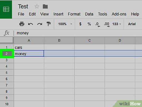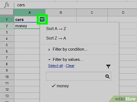 Click on the green three-line triangle icon in the top-left cell.