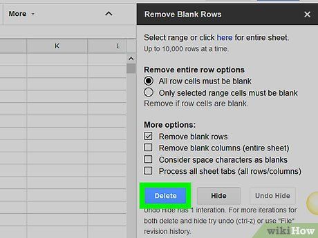 Click on Delete (Delete). This option is located in the "Remove Blank Rows (and More)" add-on settings column.