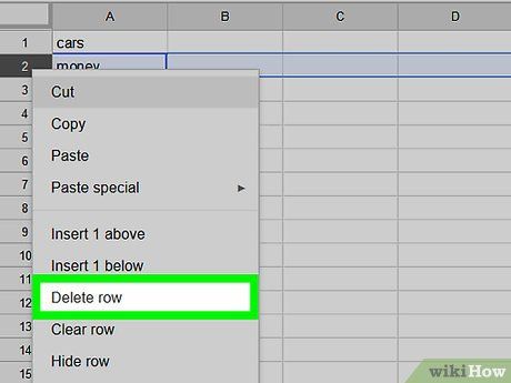 Click on Delete Row.