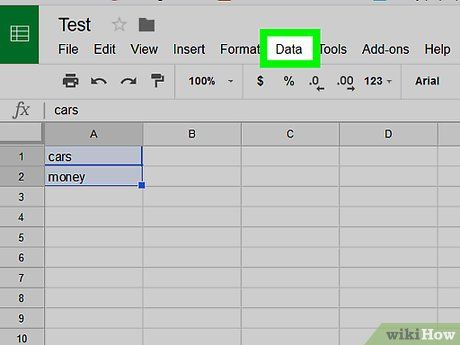 Click on the Data tab in the top menu bar.