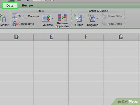 Click on the Data tab located on the left side of the green ribbon at the top of the Excel window.