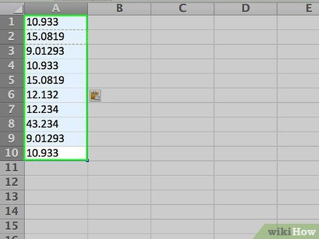 - If selecting a single column, click on the bottom cell containing data.