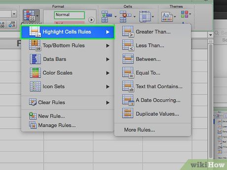 Select Highlight Cells Rules. A new window will pop up.