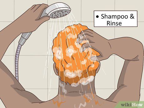 Wet your hair completely before applying the shampoo. Stand under the shower and let water run through your hair for about a minute, as you would with regular shampoo.
