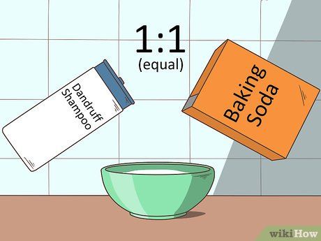 Mix baking soda and shampoo in equal parts. You can mix them in a container or simply pour equal amounts into your palm. Precision isn’t necessary!