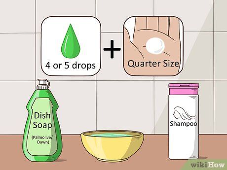 Mix 4-5 drops of dish soap with regular shampoo. Popular options like Palmolive and Dawn are great choices. Use a coin-sized amount of shampoo and mix it with a few drops of dish soap.