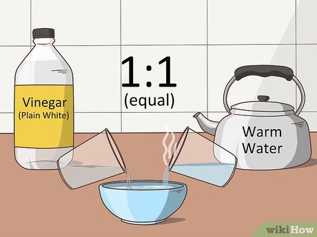 Mix vinegar with warm water. Make sure to use white vinegar. Apple cider vinegar has a lower acidity level and won’t be as effective.
