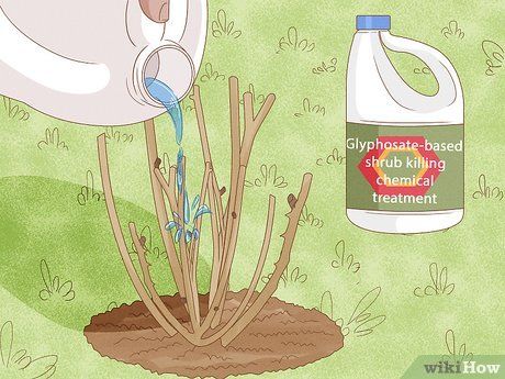 Kill the shrub with chemicals. Trim down most of the shrub, leaving just a short stump above the ground. Purchase herbicides containing glyphosate from a garden supply store.