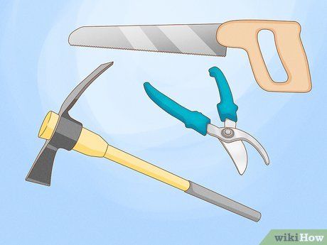 Prepare the necessary tools and materials. A sharp pruning shear and a small saw will make it much easier to cut through shrubs – remember that sharp blades are safer than dull ones.