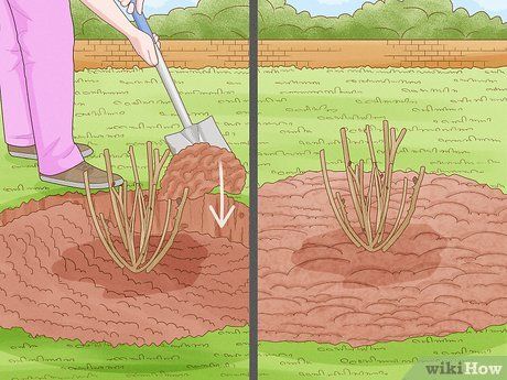 - When digging the new hole, ensure it is wide enough by measuring the shrub's root size. You can do this by using a tape measure at a point 15 cm above the ground on the main stem.