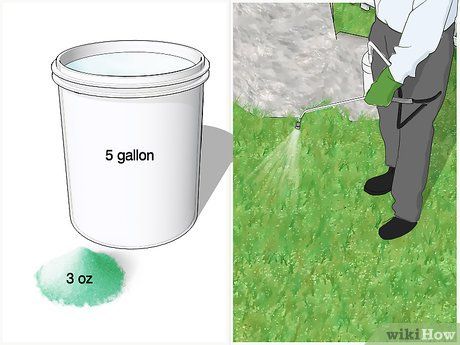 - Spray 20 liters of the mixture over 300 m². Mix 90 ml of iron sulfate with 20 liters of water.