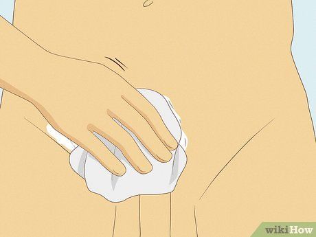 Trim or shorten the pubic hair to your desired length. If using scissors, pinch a small section of hair between your fingers and gently stretch it. Slowly cut the hair to your preferred length. Trim around the bikini line carefully, then proceed with the rest. If using an electric trimmer, attach the guard to the desired length. Stretch the skin and gently glide the trimmer along the hair's growth direction to reduce irritation.