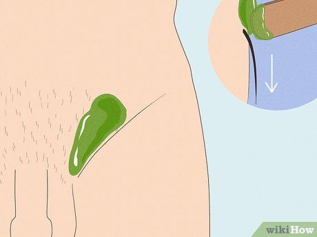 Buy a safe hair removal cream for the intimate area. Hair removal creams contain chemicals that break down hair just below the skin, so the hair won't regrow quickly. You can find these creams in the cosmetic section of large department stores. Make sure the packaging indicates that it's safe for use on the pubic area, as these products use gentler chemicals to minimize the risk of irritation.