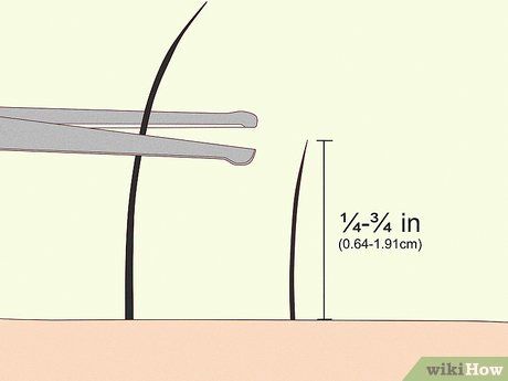 Trim your hair to about 0.5-2 cm before waxing. Hair removal works best when the hair is short, as this prevents the skin from being overly pulled. Use scissors or an electric trimmer to shorten the hair near the skin. Be careful and slow to avoid nicking your skin.