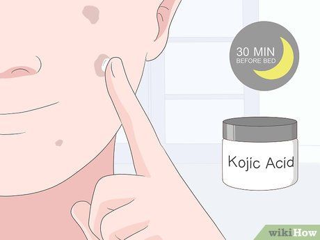 Brighten sunburn spots with kojic acid products before bedtime. Many popular over-the-counter creams contain kojic acid, a compound derived from fermented rice water proven to fade sunburn marks. About 30 minutes before sleeping, apply a small amount of the cream to sunburn marks on your face, hands, and arms, then massage it into the skin. Since the product works gradually, you may need to use it for several weeks or even months to see results.
