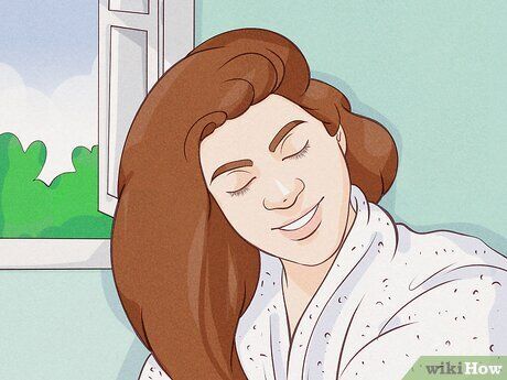 Let your hair dry naturally instead of using a blow dryer. This might be a challenge for those who are accustomed to blow-drying or using other styling tools to achieve a perfect hairstyle every day. If your goal is to restore and strengthen your hair, consider heat styling tools as an unnecessary setback. Start by letting your hair air-dry and aim for a more natural look, as this will aid in the recovery process.