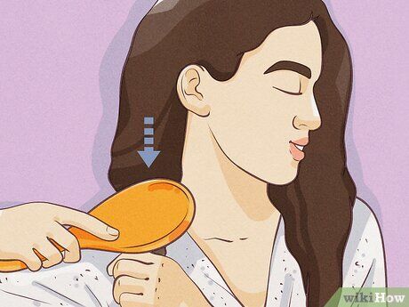 Only brush your hair when it's dry. Brushing wet hair can lead to damage. Detangle your hair with a wide-tooth comb. Gently start brushing from the tips, working your way up toward the roots, until you can comb through without catching any tangles. Once your hair is completely dry, you can use a boar or pig bristle brush to smooth it out.