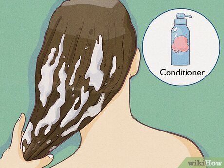 - When using conditioner, gently comb it through your hair from roots to tips, and leave it in for 5–10 minutes depending on how soft and smooth you want your hair to feel. Then, rinse most of the conditioner out, leaving a small amount in to maintain moisture.