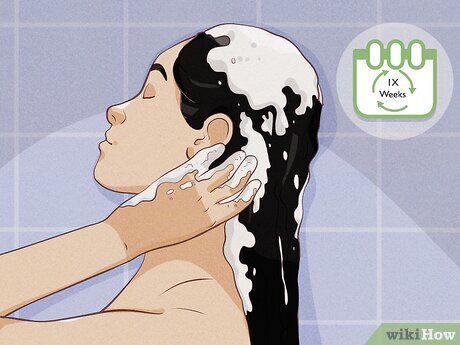 Wash your hair no more than 1-2 times per week. The scalp produces natural oils, known as sebum, which protect your hair from becoming dry. Washing your hair too often can remove these oils before they have a chance to spread down the length of the hair and provide protection. Washing it a few times a week will help maintain its natural shine and health.
