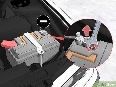 First, disconnect the negative cable and secure it in place. Always disconnect the negative cable first to avoid short-circuiting. The negative terminal is usually marked with a black color and a minus (-) symbol nearby. Remove any plastic cover if present, then loosen the negative cable clamp with a wrench and pull the cable off the terminal.