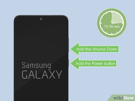 Samsung Galaxy: Press and hold the Volume Down and Power buttons for 15 to 30 seconds until the phone restarts.