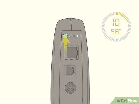 Press and hold the button until the lights or display on the cable box turn off. Press and hold the Reset button for about 10 seconds until the lights or display on the cable box turn black, and the internal cooling fan stops running. Once the lights turn off, you can release the Reset button.