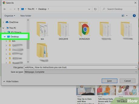 Choose a location to save the page. After saving, the HTML file of the page will be stored here along with a folder containing all the multimedia content from the page (if you choose to save the entire page).
