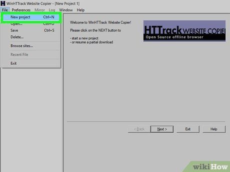 Launch HTTrack and create a new project. HTTrack stores each page you've saved as a 'project.' This allows you to easily select and update stored pages as needed.
