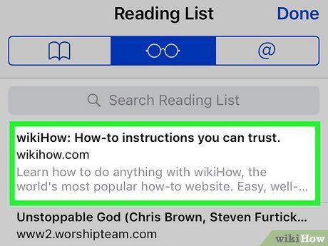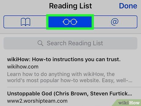 Access saved pages in the Reading List. You can view your Reading List even when offline. Tap the Bookmarks button in Safari and then tap the tab with the glasses icon to see all pages saved to your Reading List.